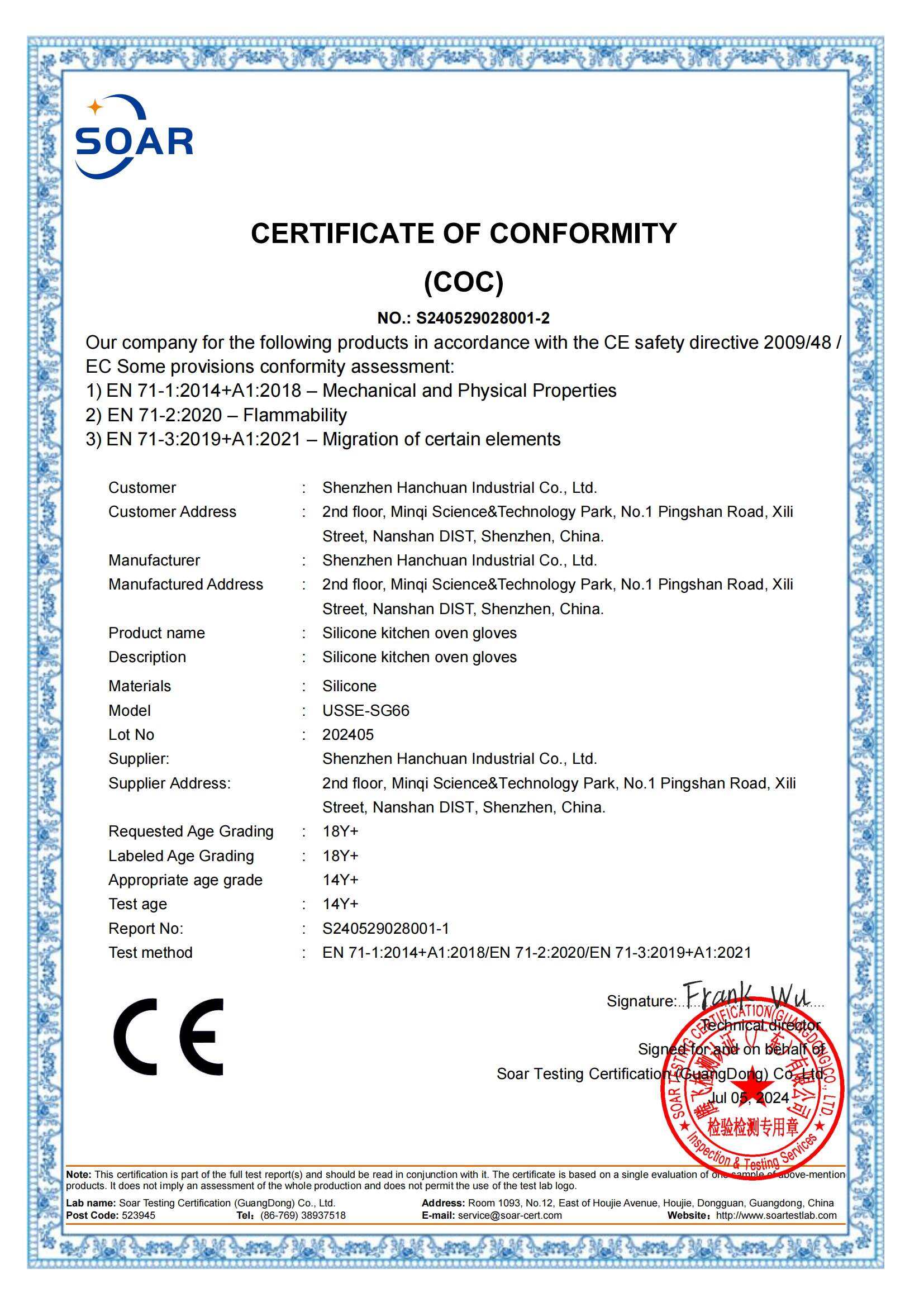 Our products comply with international standards, including: ISO9001, LFGB, CE, EN71 Strict quality control at every stage guarantees consistent performance.