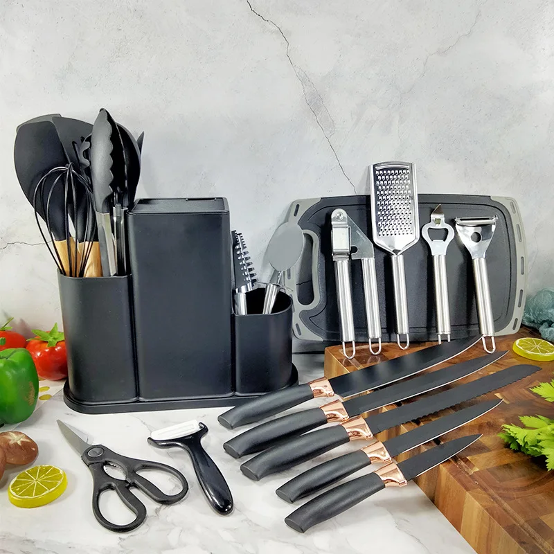 Tilpasset engroshandel med køkkenredskaber, rustfrit stål køkkenknivsæt, silicone spandel og ske, madlavningsredskaber, bagværktøjer