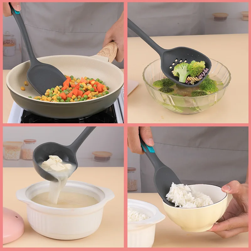 Silikone køkkenredskabssæt, suppespatula, sigte, ske, kogespatula – til grossisthandel