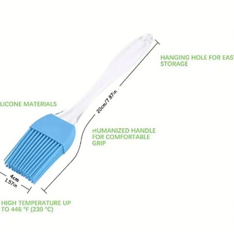 Cleaning and maintenance requirements are minimal due to the silicone's non-stick properties and resistance to staining. The brush can be thoroughly sanitized using standard dishwashing methods or commercial kitchen cleaning protocols, maintaining hygiene standards essential for food service operations. The quick-drying silicone surface prevents moisture retention that could lead to bacterial growth or unpleasant odors.