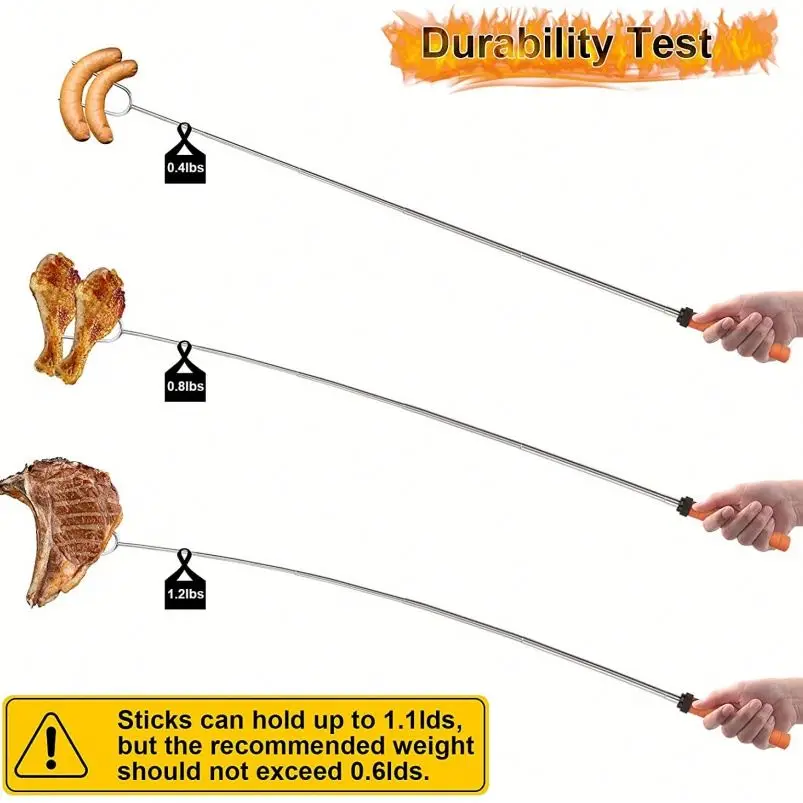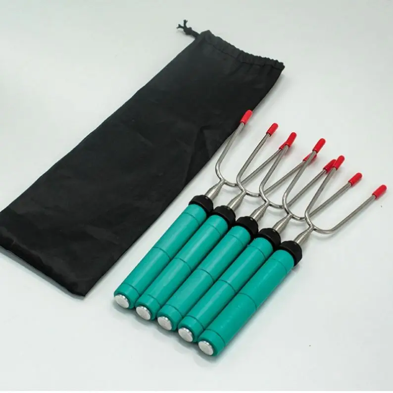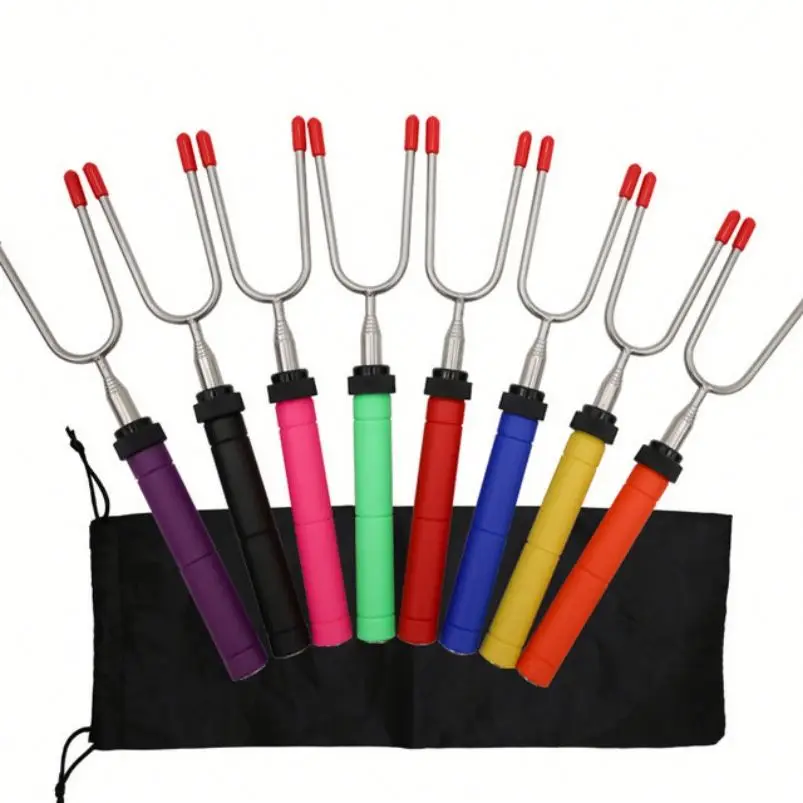 BBQ Forks Stainless Steel Smore Skewers With Wooden Handle Telescoping Smores Roasting Sticks for Fire Pit