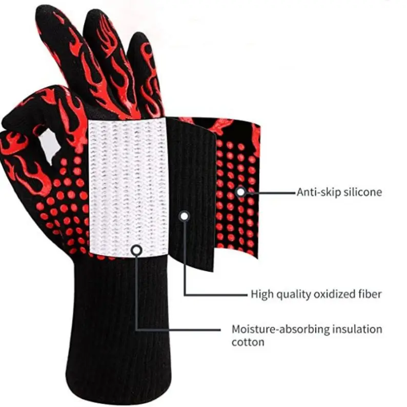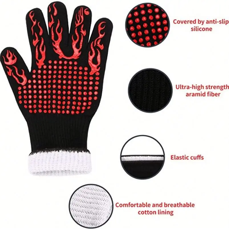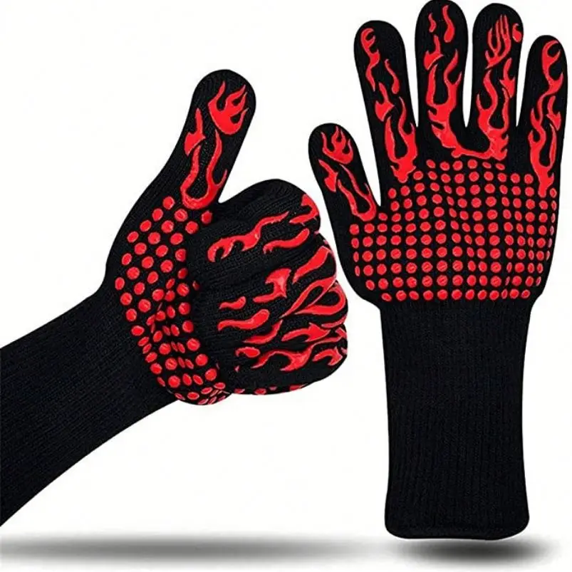 BBQ Grilling Mitts Non-Slip Oven Glove Food Grade Silicone Kitchen Potholder 1472F Heat Resistant Oven Mitts for Cooking Barb