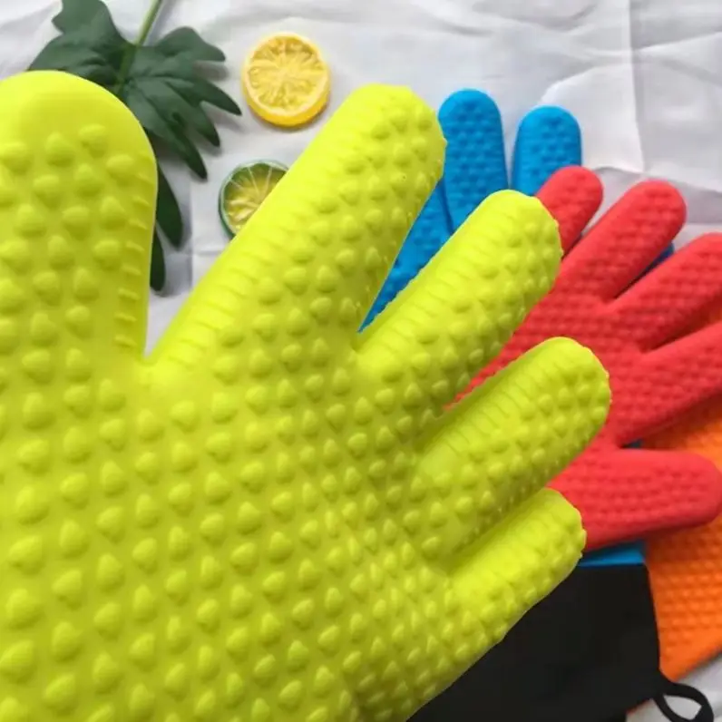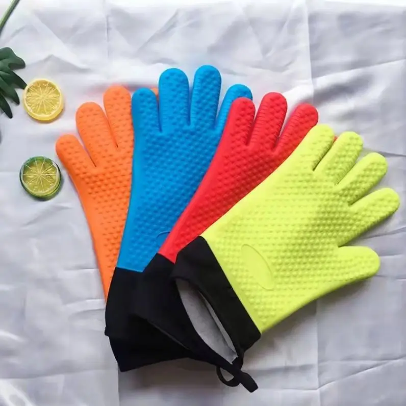 Custom Wholesale Silicone Heat-Resistant Gloves Cooking BBQ Cotton Kitchen Microwave Mittens Oven Glove Heat Resistant Gloves