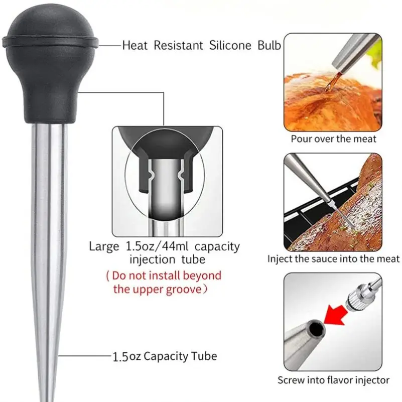 The Manual Silicone and Stainless Steel Cooking Seasoning Pump Turkey Injector Meat Injectors for BBQ Turkey Baster Set represents the convergence of advanced materials science, precision engineering, and practical cooking functionality. This comprehensive injection system enables professional chefs and serious cooking enthusiasts to achieve consistent, restaurant-quality results through precise flavor distribution and enhanced seasoning penetration. The combination of durable stainless steel construction with flexible silicone components creates a versatile tool that performs reliably across diverse cooking applications and environments. With comprehensive quality control measures, extensive customization options, and robust logistics support, this injection system provides exceptional value for distributors, retailers, and end users seeking professional-grade cooking equipment that delivers reliable performance and outstanding results.