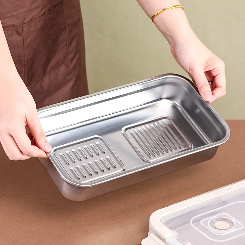 Modern Portable Stainless Steel Fresh-Keeping Box Square Dumpling Kitchenware Sealed Storage for Food