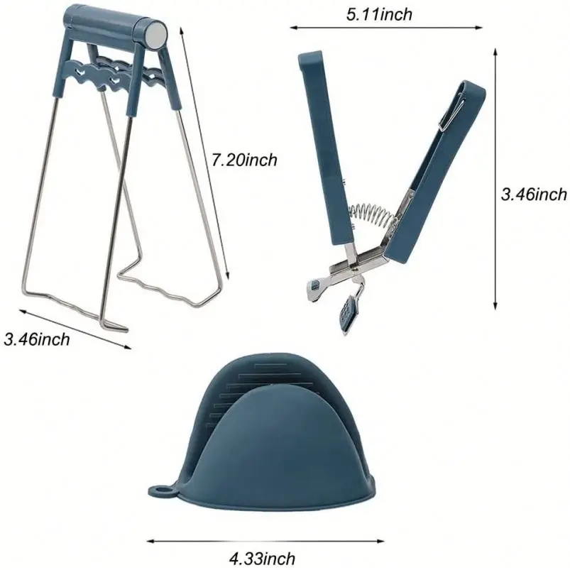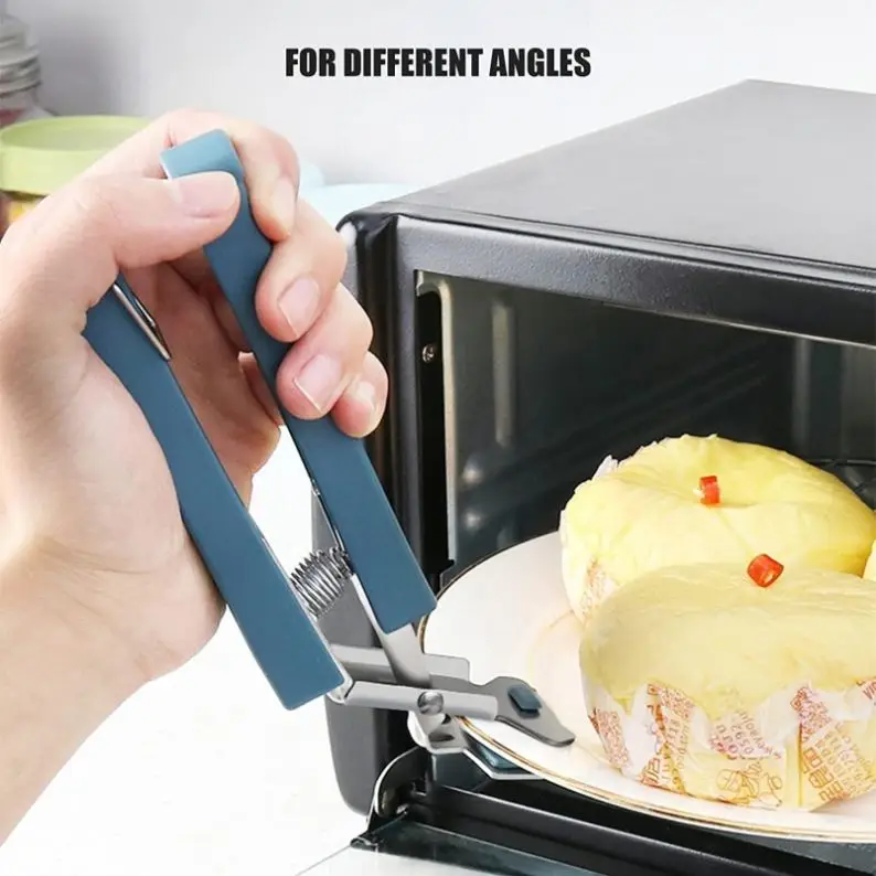 Silicone Kitchen Hot Plate Gripper Stainless Steel Bowl Clips Non-Scalding BBQ Cooking Grilling Locking Tongs Bowl Clip