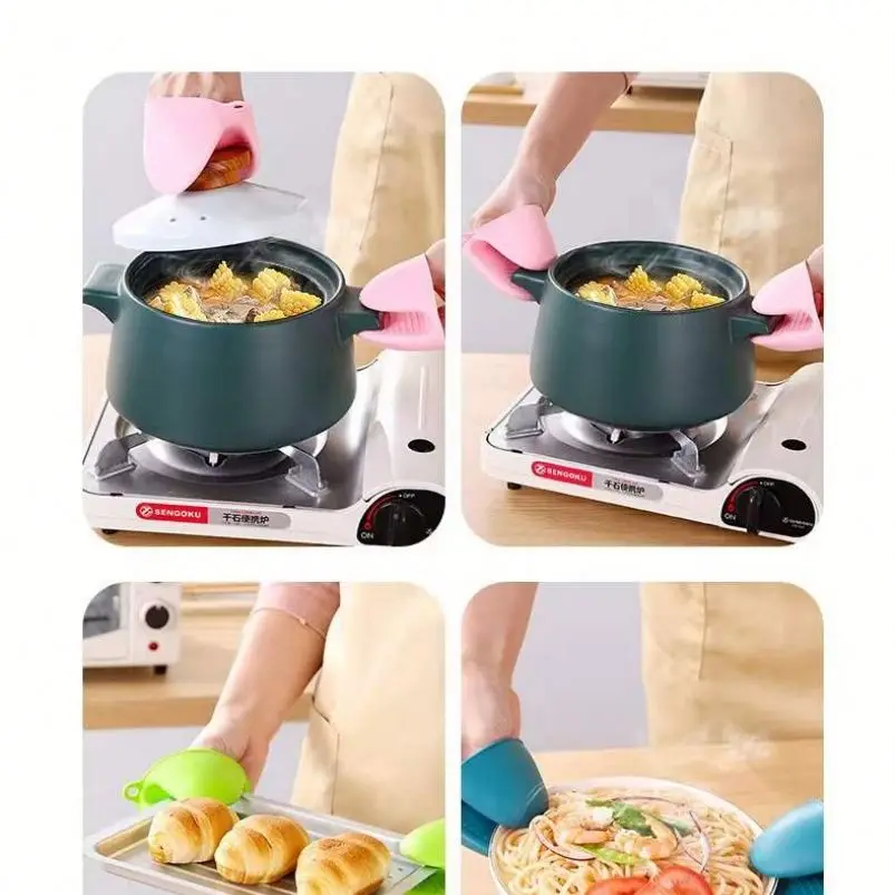 Silicone Oven Mitts Heat Resistant for Kitchen Finger Protector Pot Holder for Cooking Baking BBQ Heat Resistant Kitchen
