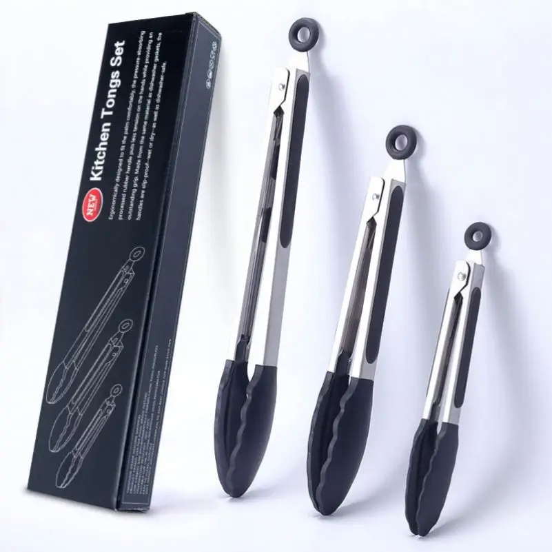 USSE BPA Free Stylish Stainless Steel Tongs Silicone Tipped, Kitchen Food BBQ and Cooking Tongs Set