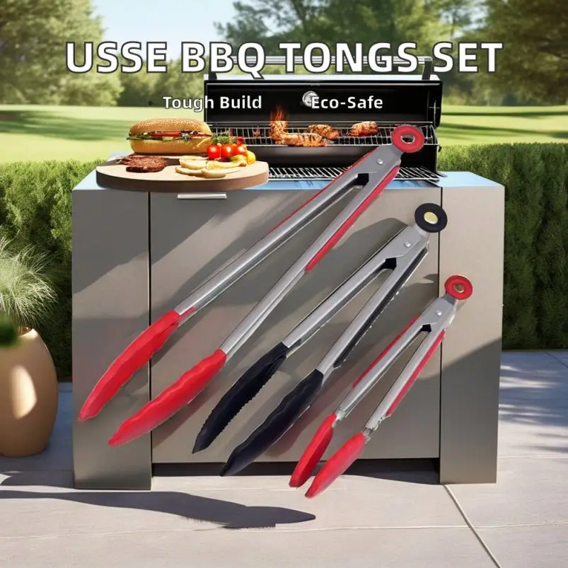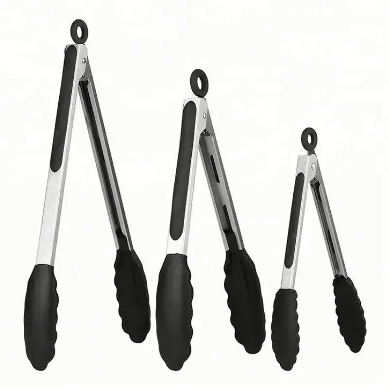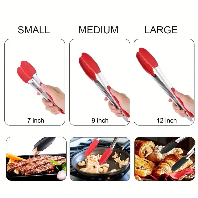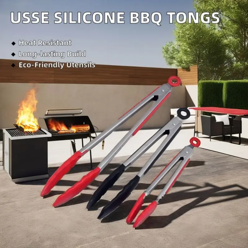 USSE Kitchen Cooking BBQ Grilling Tongs Set 7 9 12 Inch Silicone Metal Hand Design Style for Food Salad Serving BBQ Box Packed